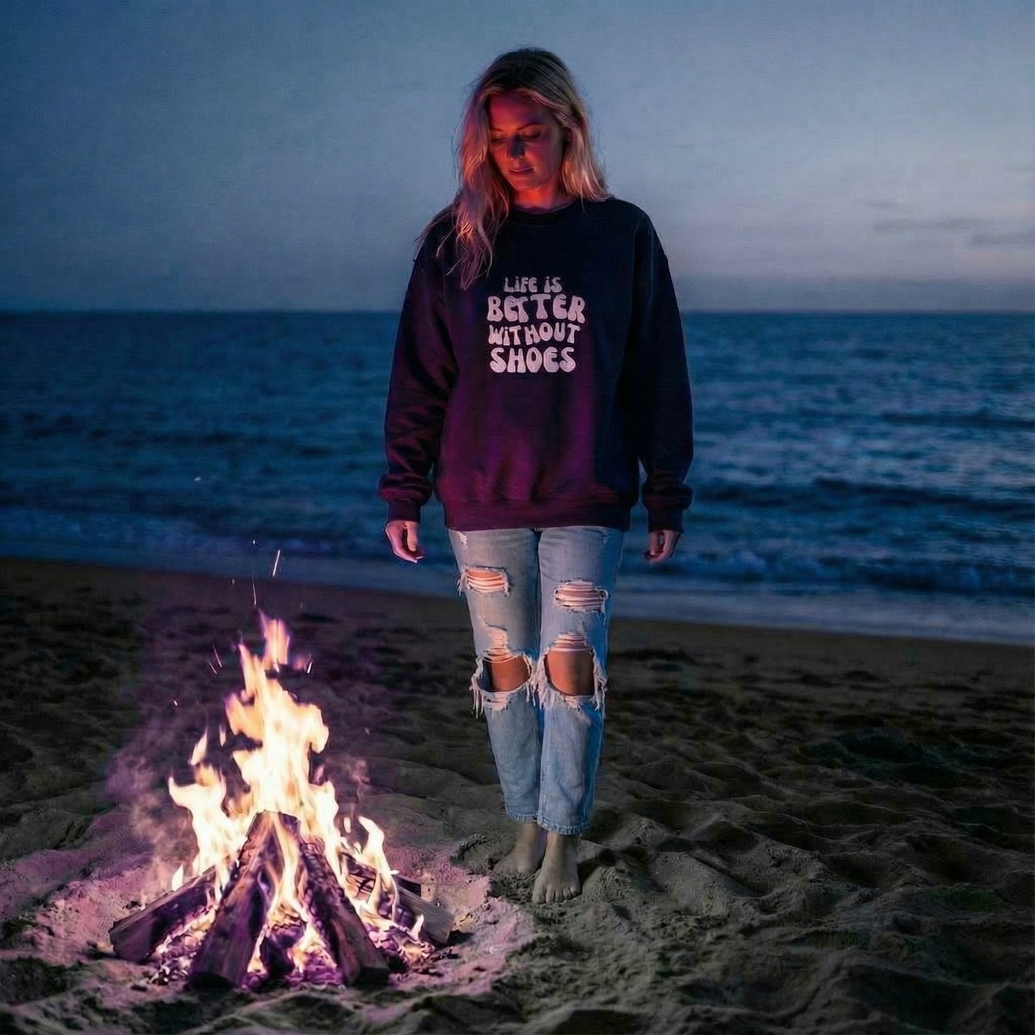 For those who know the best days start with sand between your toes. Classic beach-inspired sweatshirts for those cool nights around the campfire.